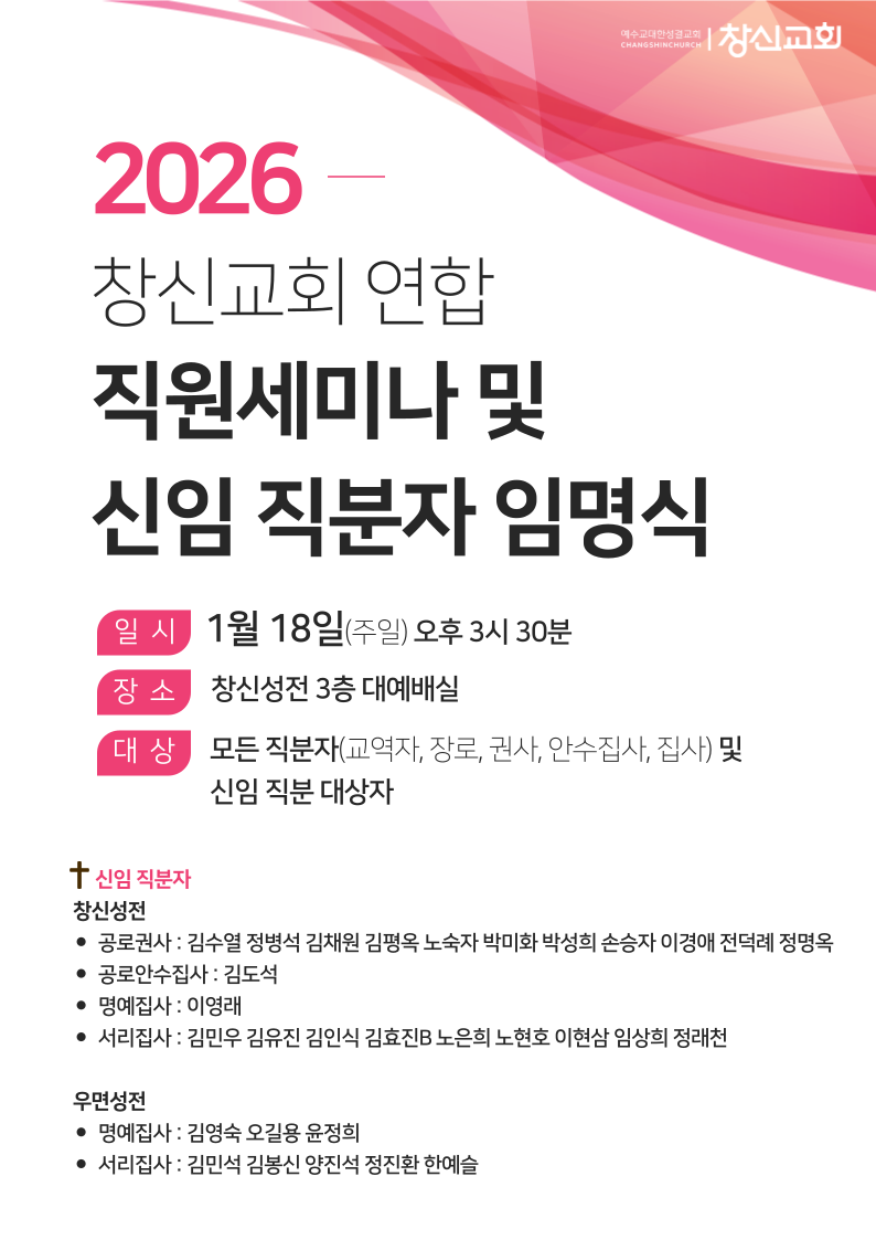 2026 창신교회 연합 직원세미나 및 신임 직분자 임명식