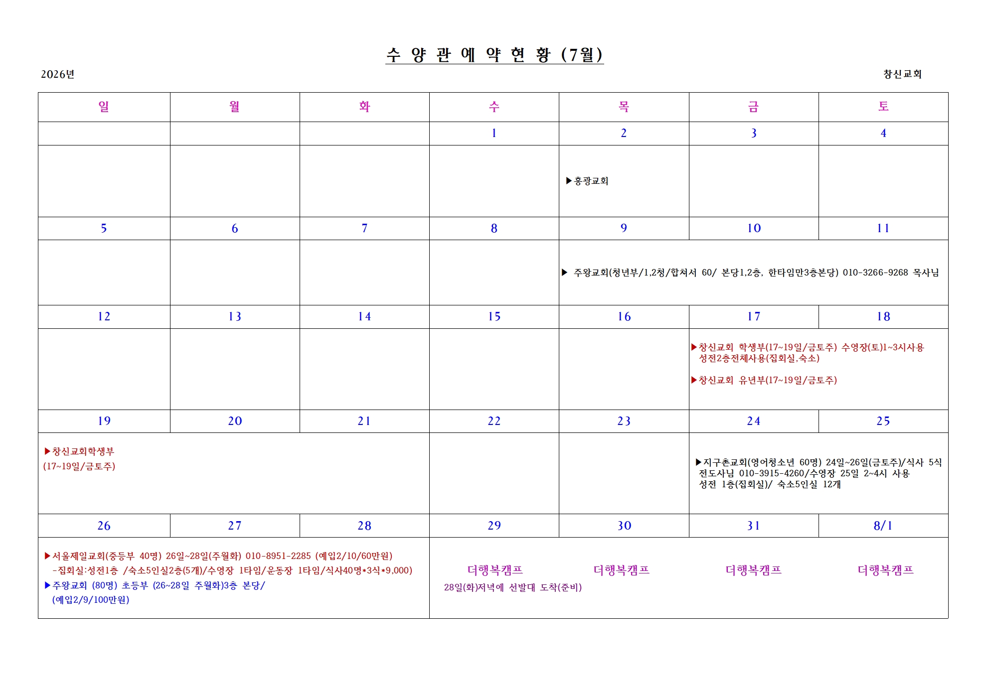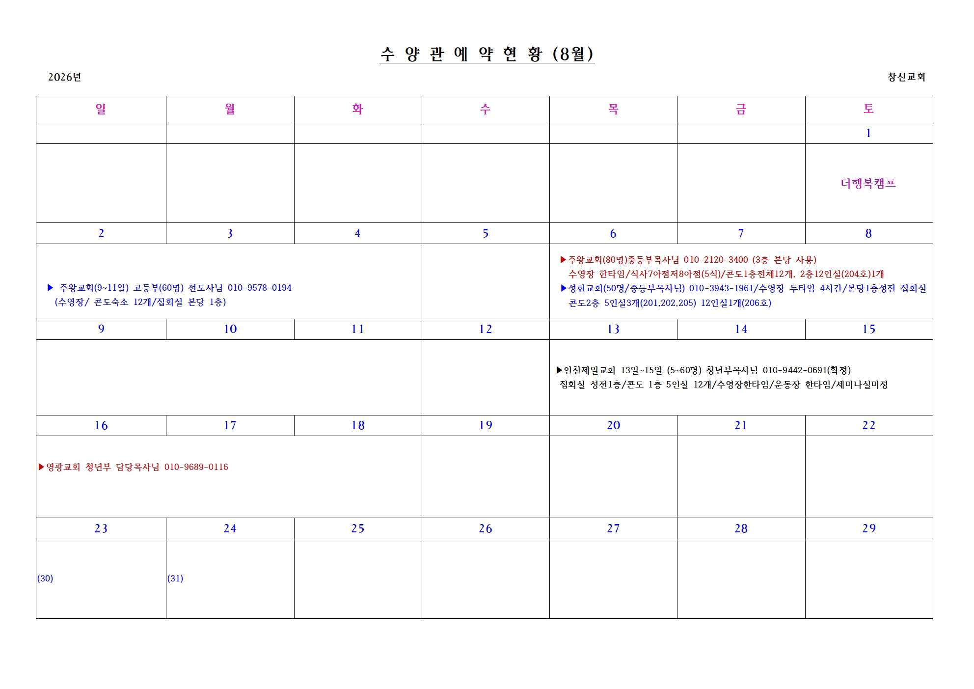 수양관 예약 현황은 아래를 참고해주세요.